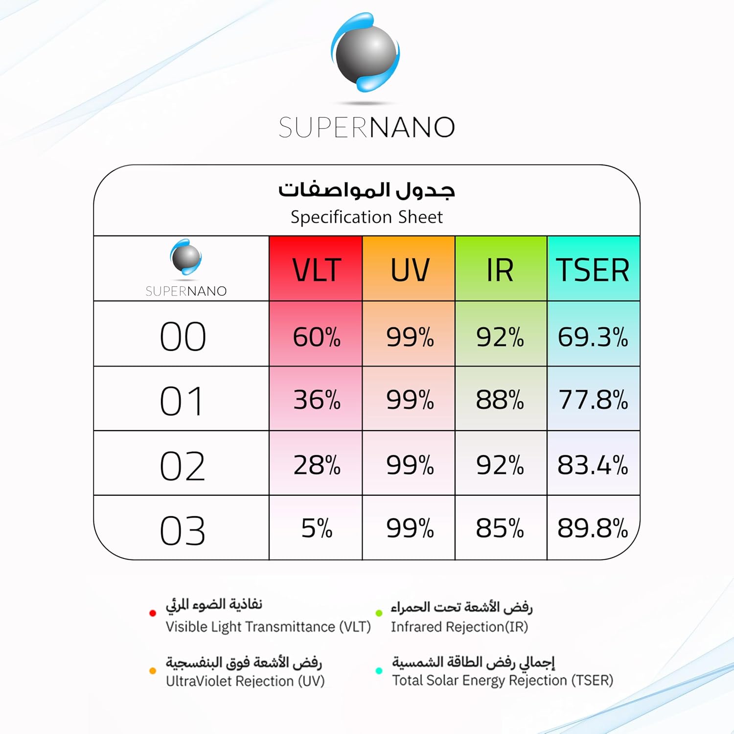 يتوفر لدى سوبر نانو ثلاث انواع من العازل للحرارة و الذي يختلف على حسب درجة الشفافية.